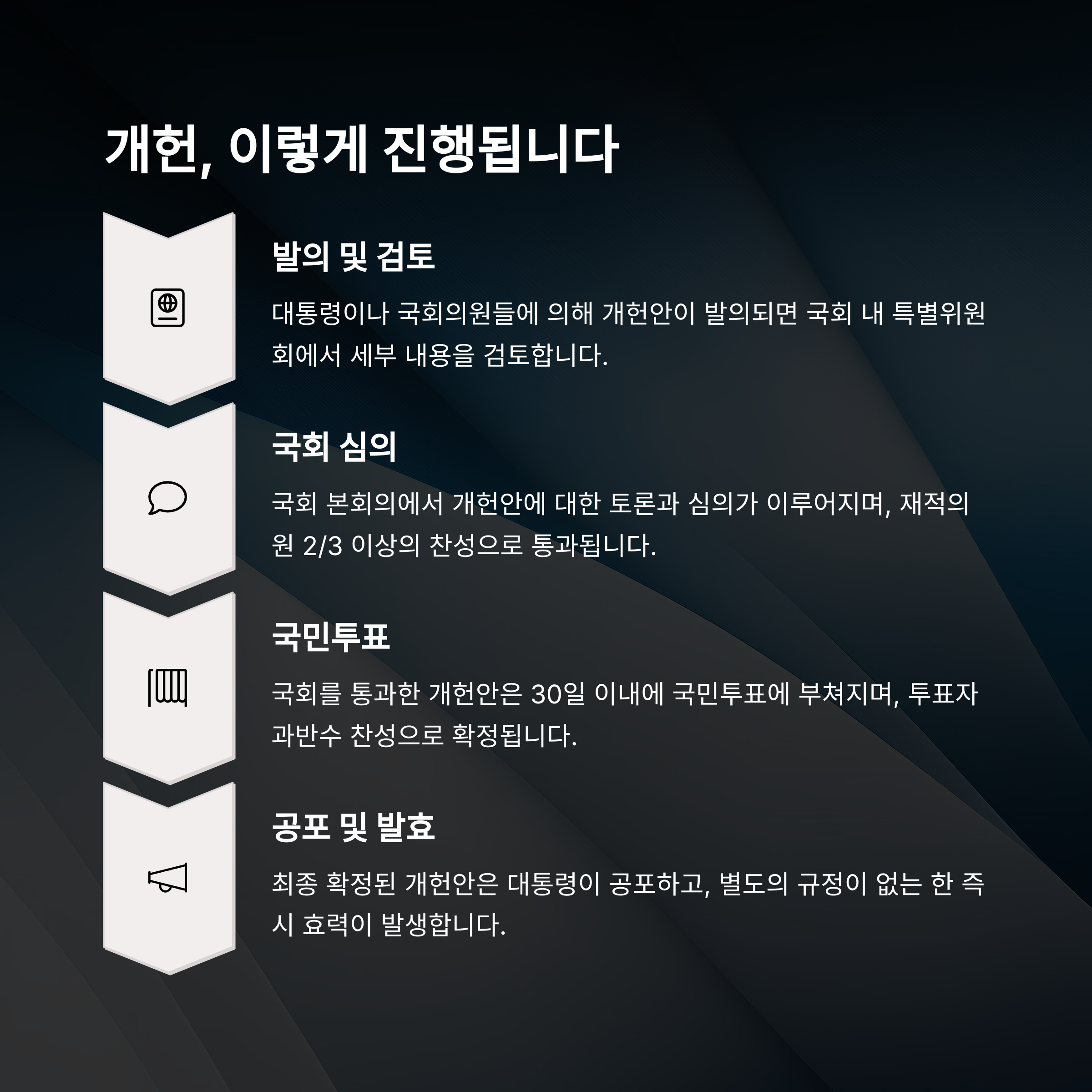 우리나라의 개헌 절차는 꽤 까다롭고 철저해요: