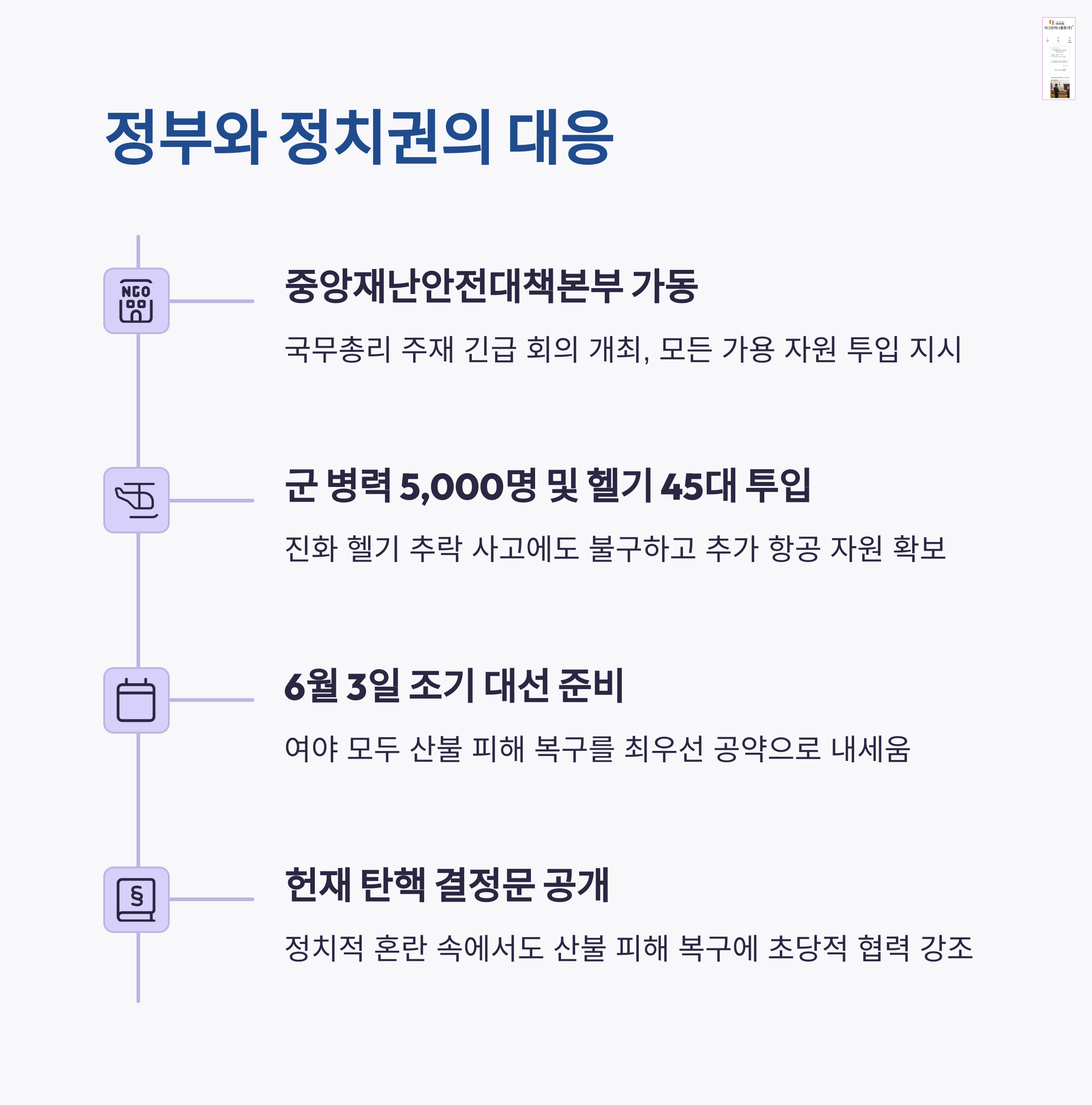 | 19 | 탄핵 사후 대응 | 헌재 결정문 반영해 후속 조치 촉구 |
