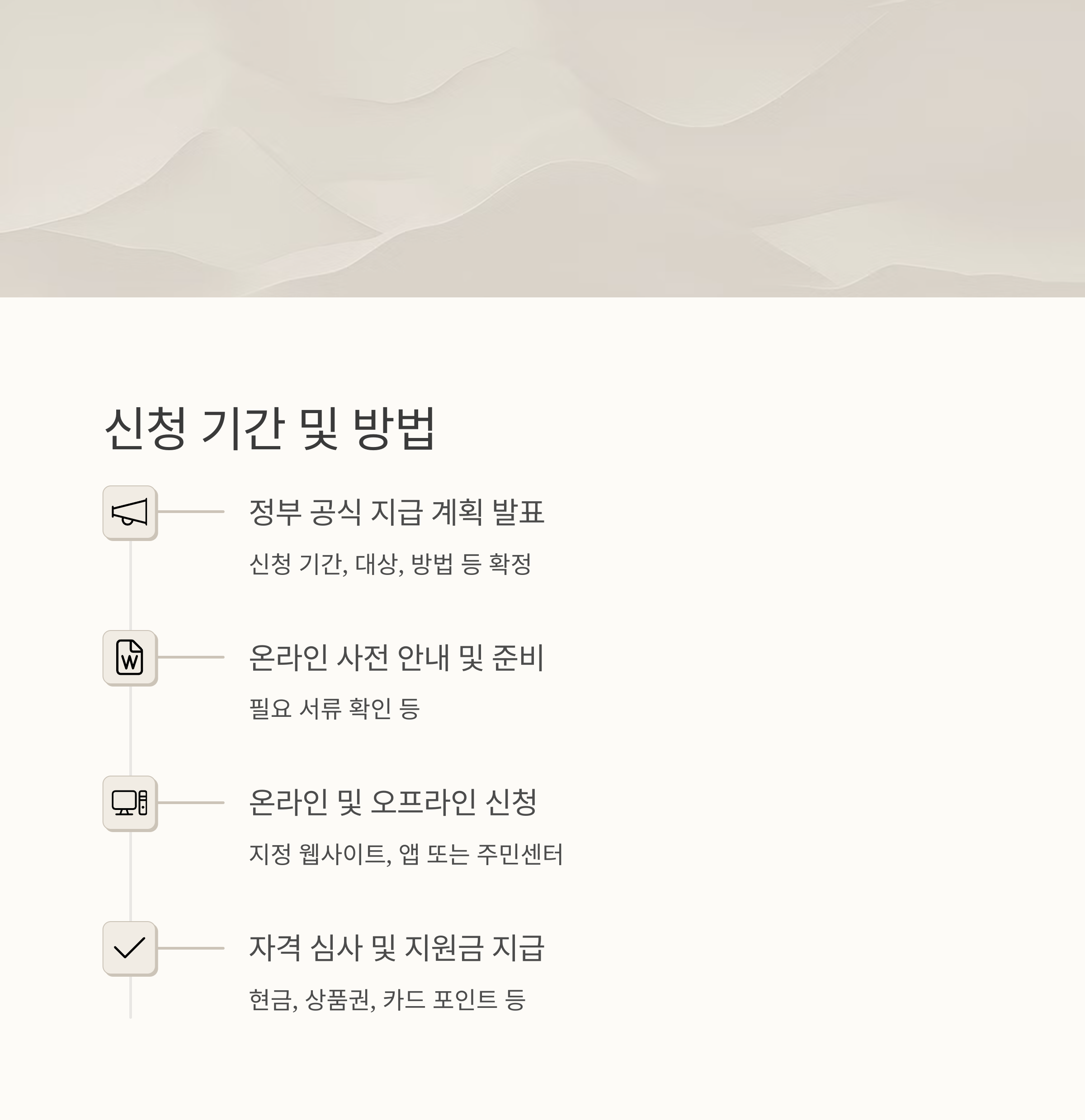 1단계: 정부의 공식 지급 계획 발표 (신청 기간, 대상, 방법 등 확정)