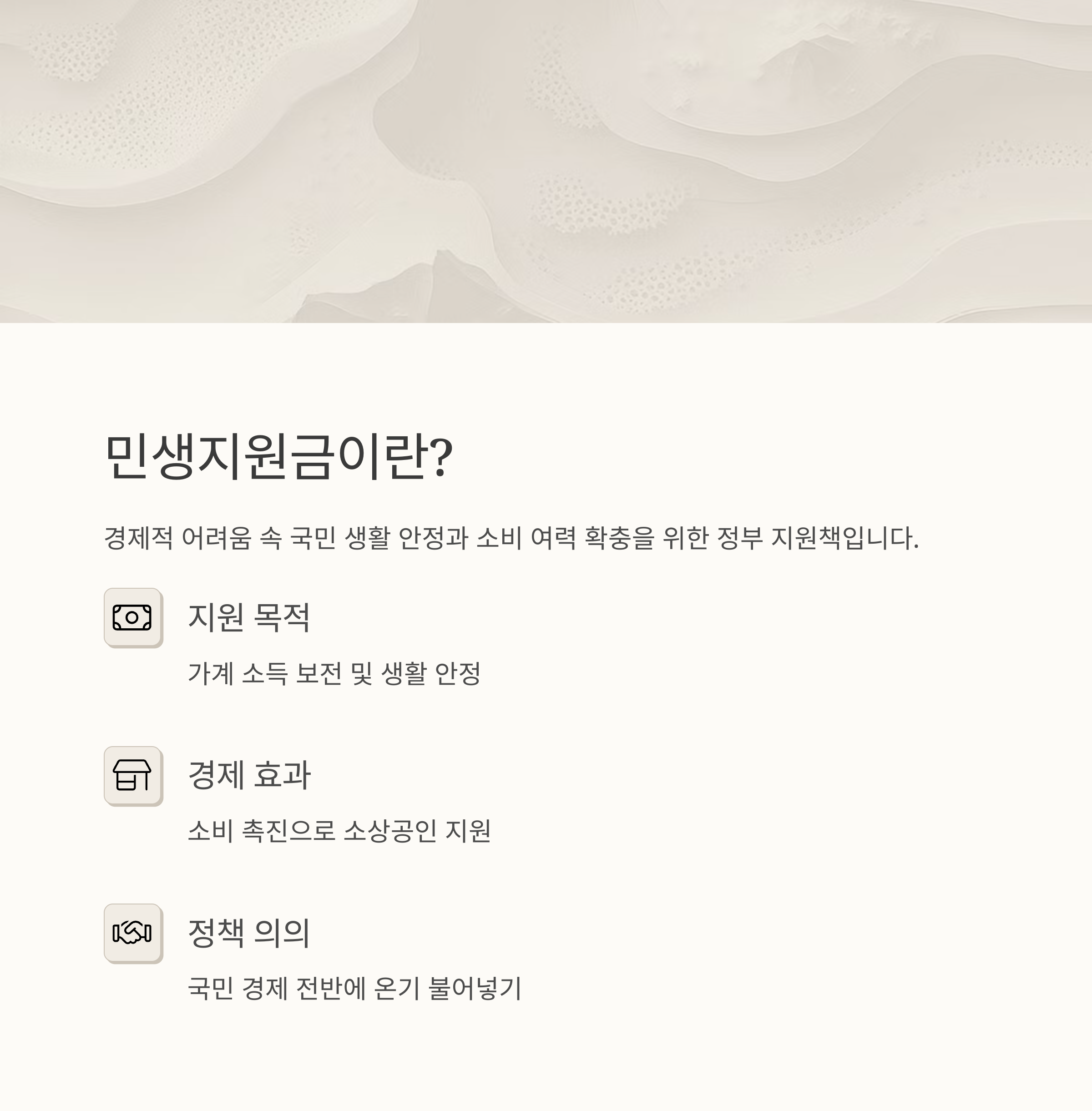 이 글에서는 많은 분들이 궁금해하시는 25만원 민생지원금의 지급 대상, 신청 시기와 방법, 그리고 현명한 사용처까지 전반적인 내용을 알기 쉽게 설명해 드리고자 합니다.