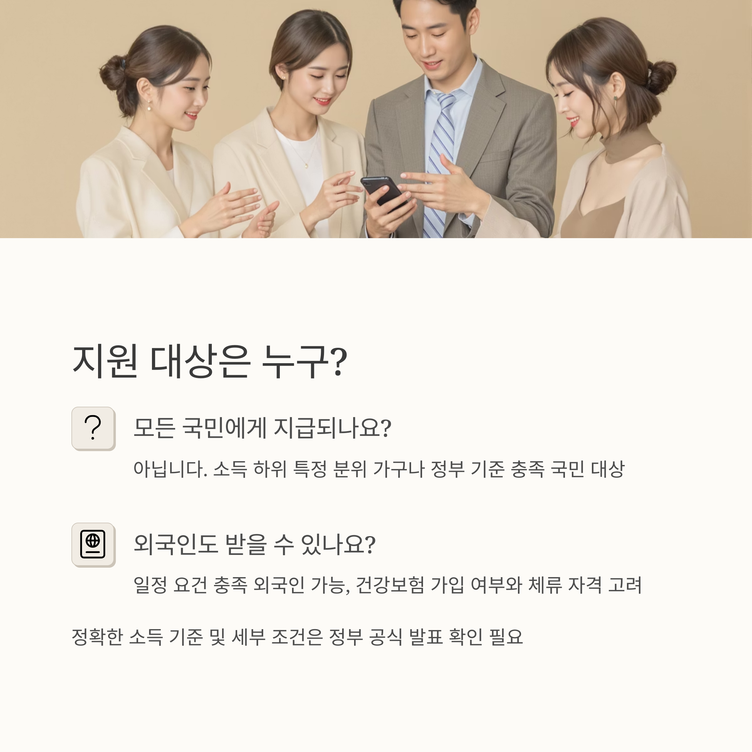 본 정보를 통해 지원금 수령 자격을 확인하고, 신청 절차를 미리 준비하여 빠짐없이 혜택을 받으시길 바랍니다.