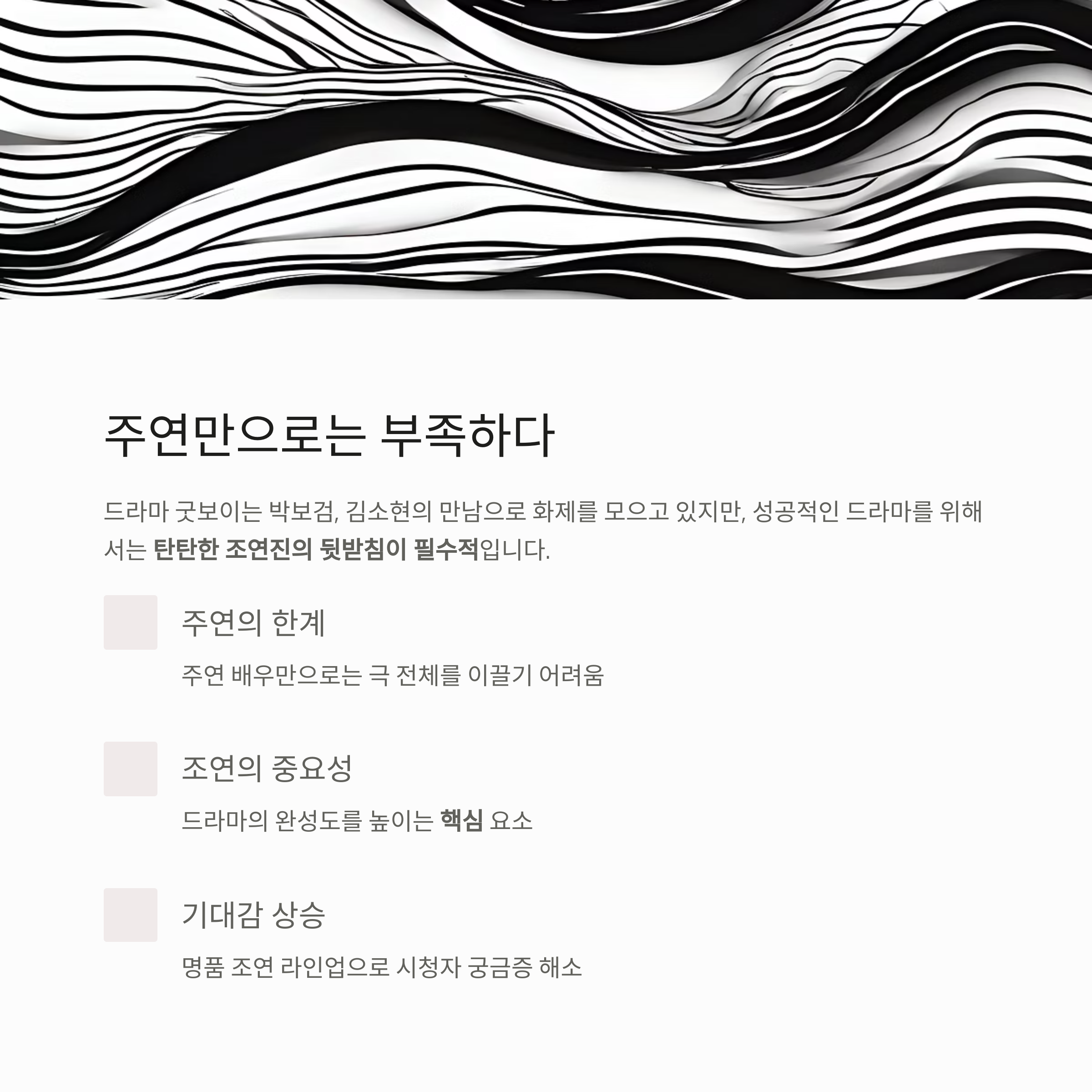 탄탄한 조연진의 합류는 굿보이가 단순한 기대작을 넘어, 오래도록 기억될 명작으로 발돋움하는 데 결정적인 역할을 할 것입니다.