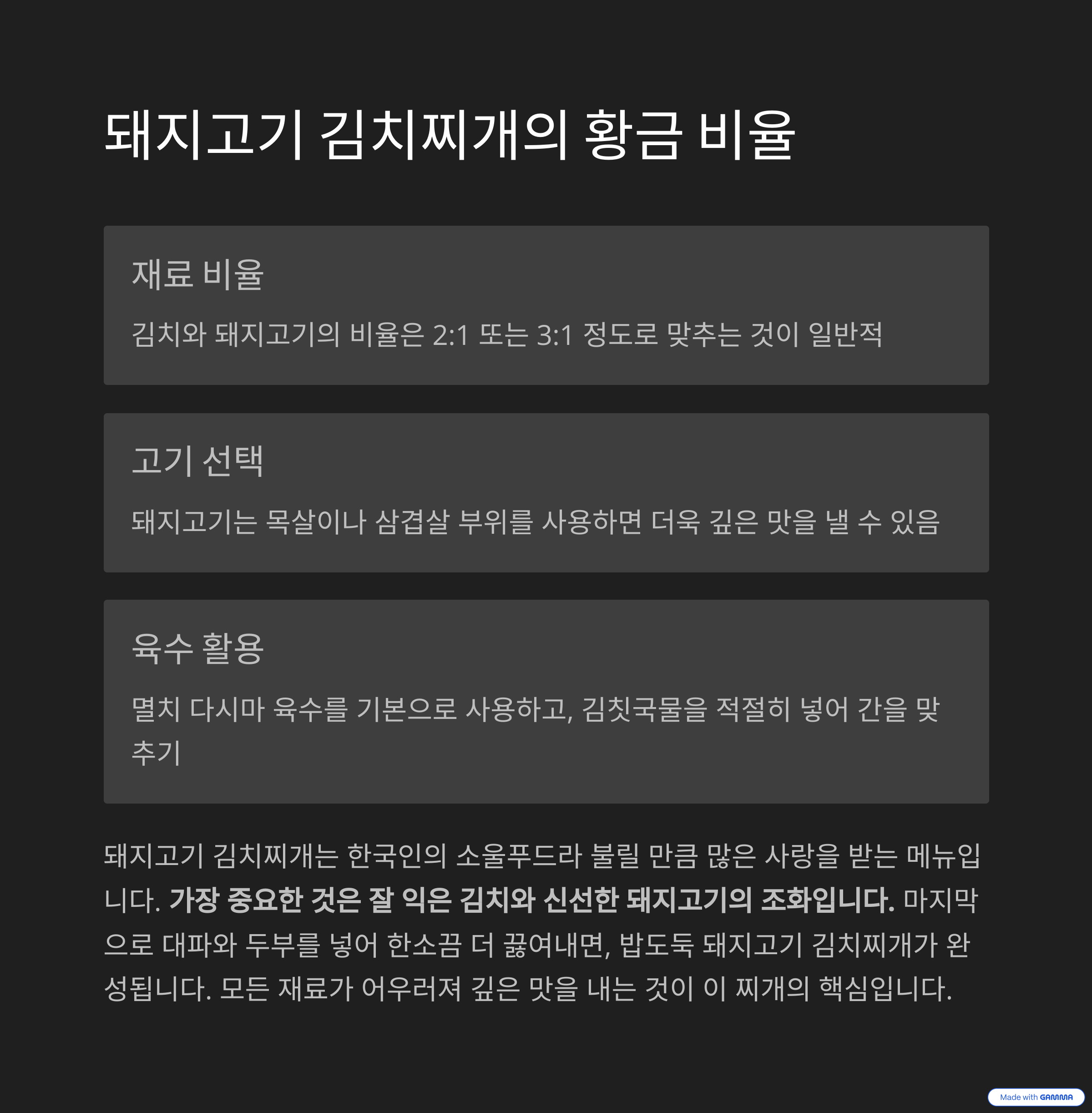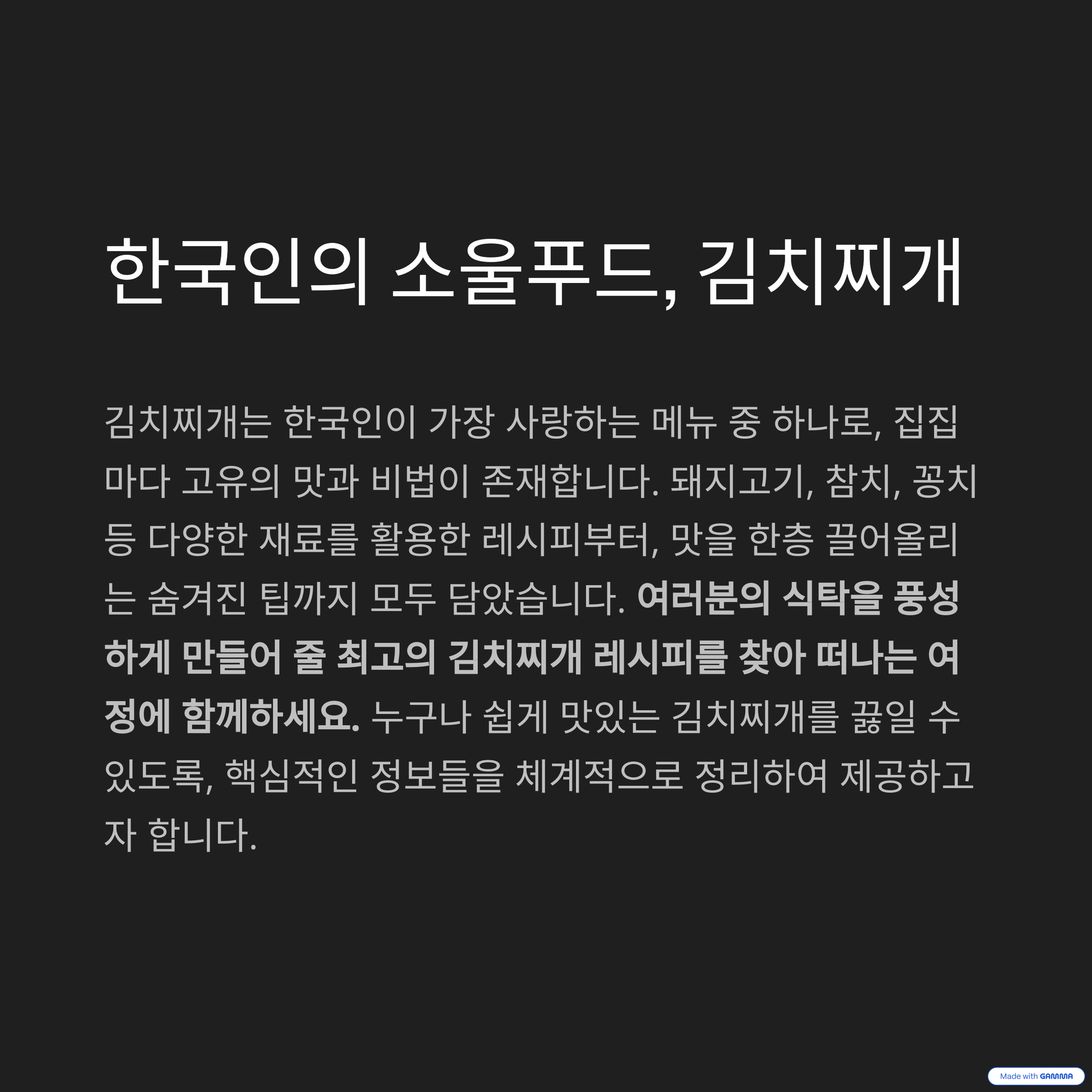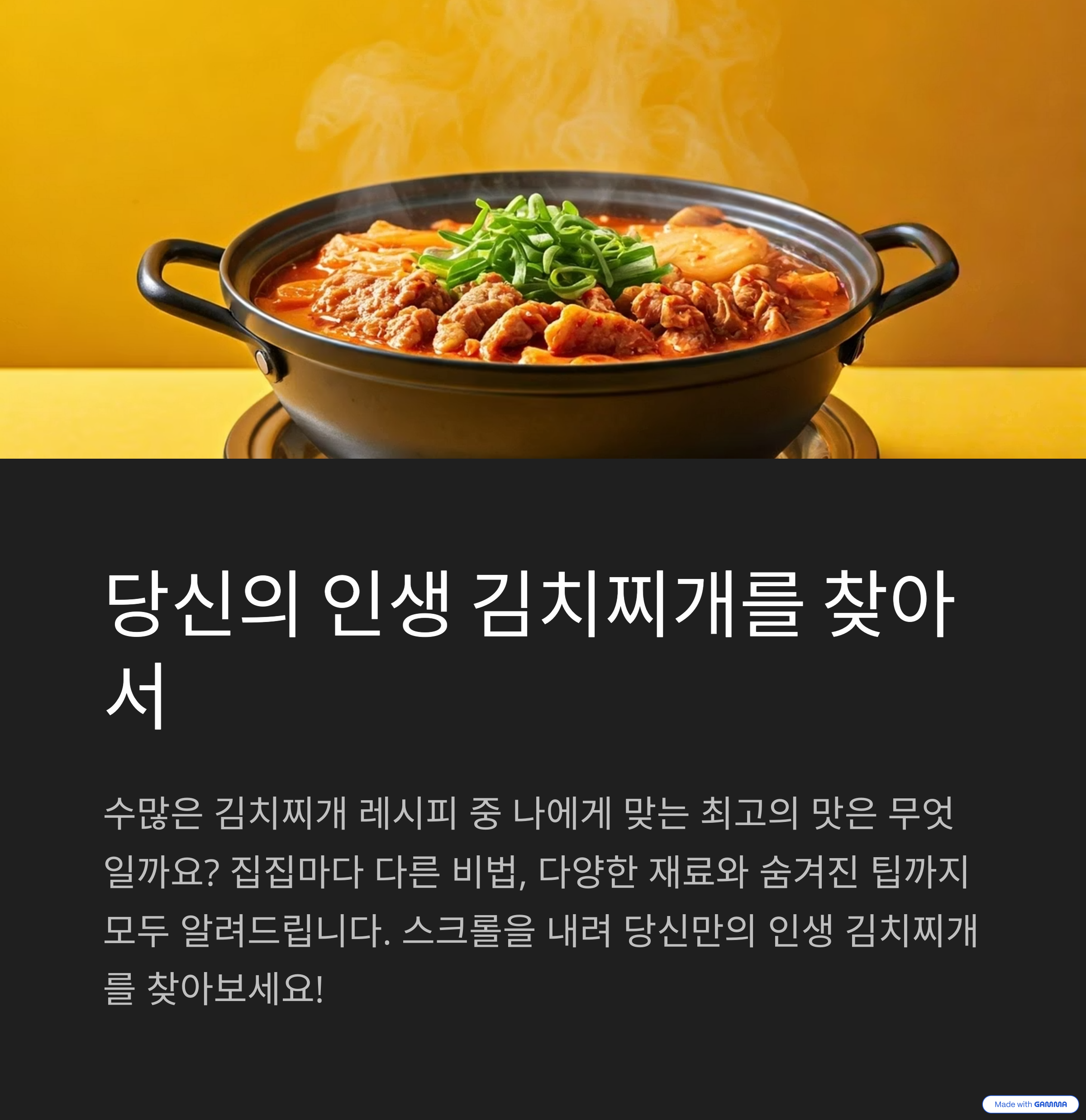 세상에 단 하나뿐인, 당신만의 김치찌개 레시피를 창조하세요
