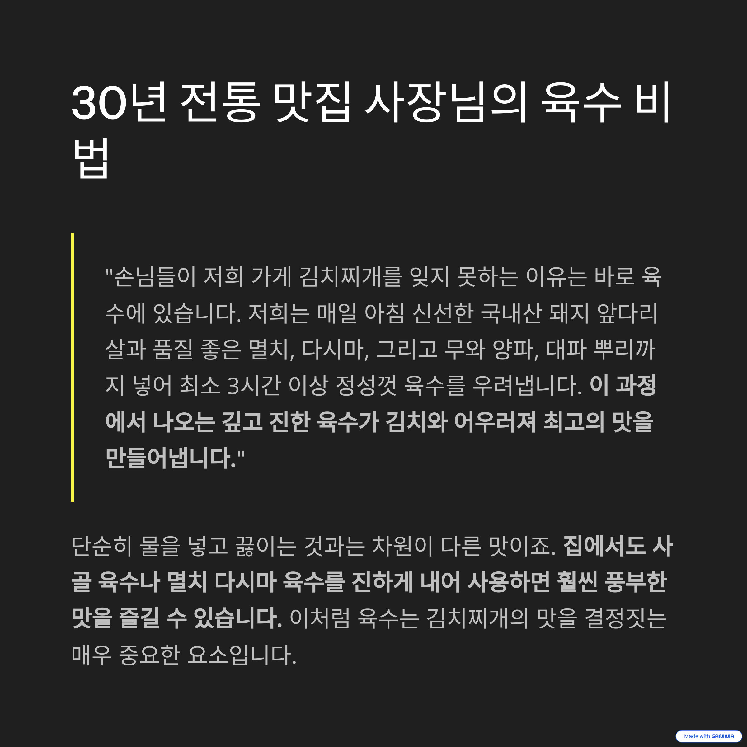 "우리 가게 김치찌개 맛의 핵심은 바로 이겁니다!" - 30년 전통 맛집 사장님의 육수 이야기