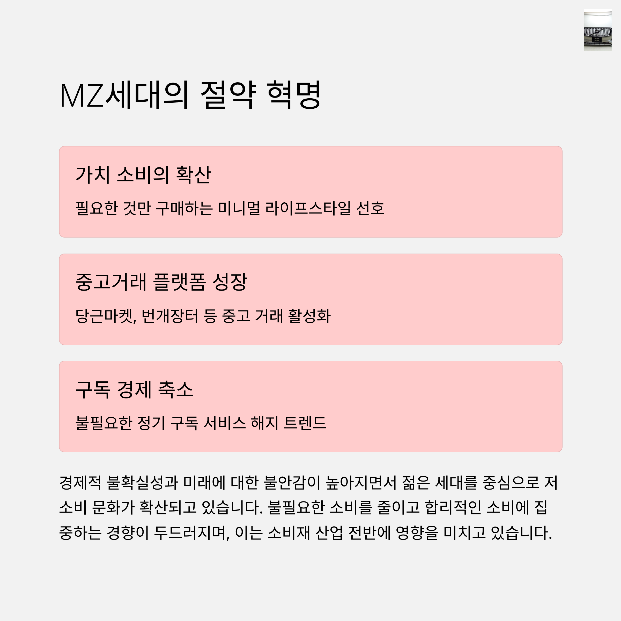 또 흥미로운 소비 트렌드도 눈에 띕니다. ‘저소비 코어’라는 말, 들어보셨나요? 2030 세대를 중심으로 꼭 필요한 것만 소비하고, 미니멀하게 살아가는 사람들이 늘어나고 있대요. 물가도 높고 미래도 불확실하니, 어쩌면 당연한 흐름일지도요.