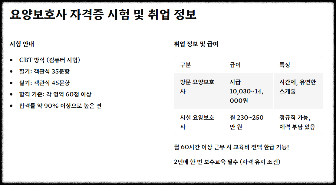 📍 요양보호사로 근무 시 월 60시간 이상 근무하면 교육비 전액 환급 가능!