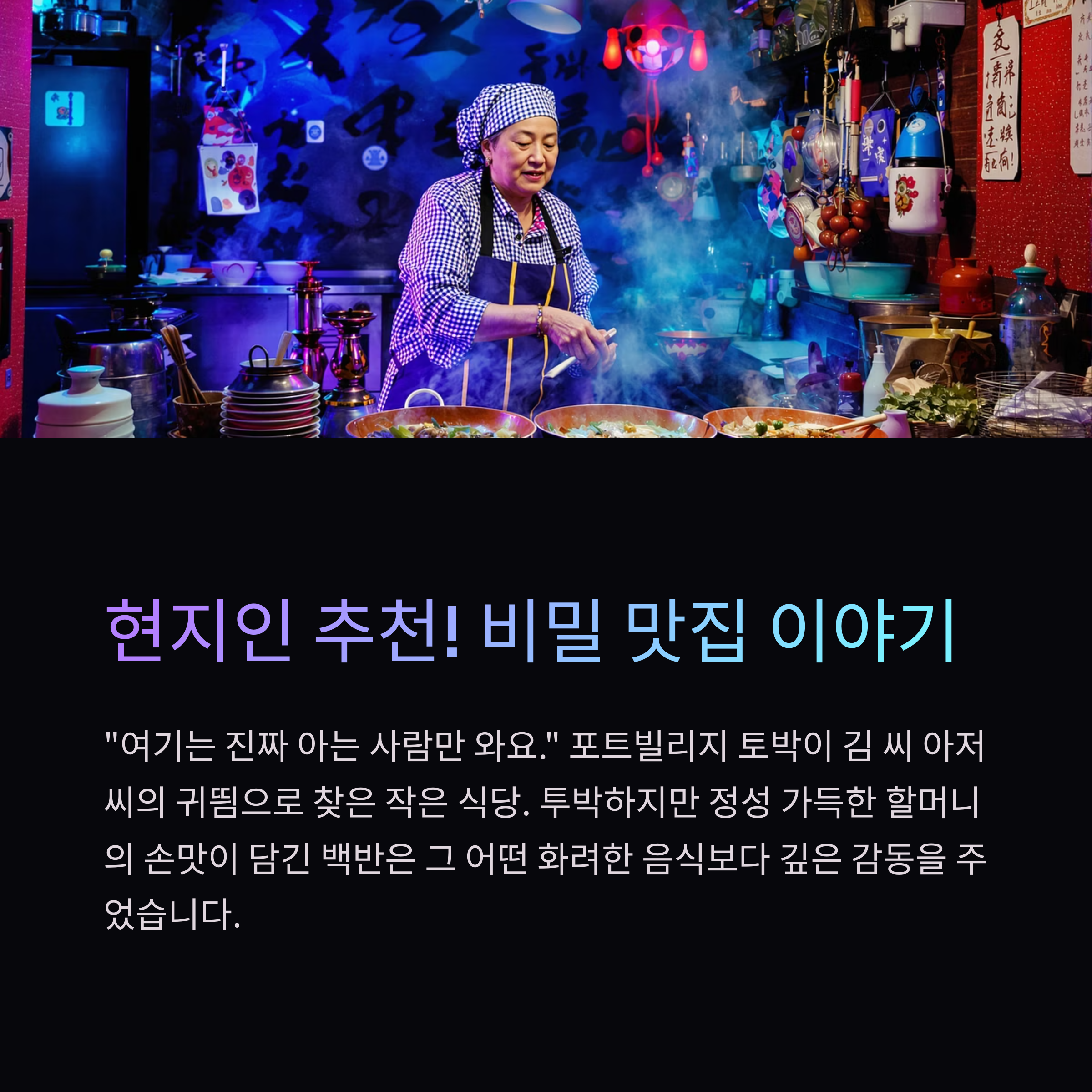 숨겨진 맛집을 발견하는 즐거움, 현지인과의 소통, 그리고 입안 가득 퍼지는 행복감은 여행을 더욱 특별하게 만듭니다.