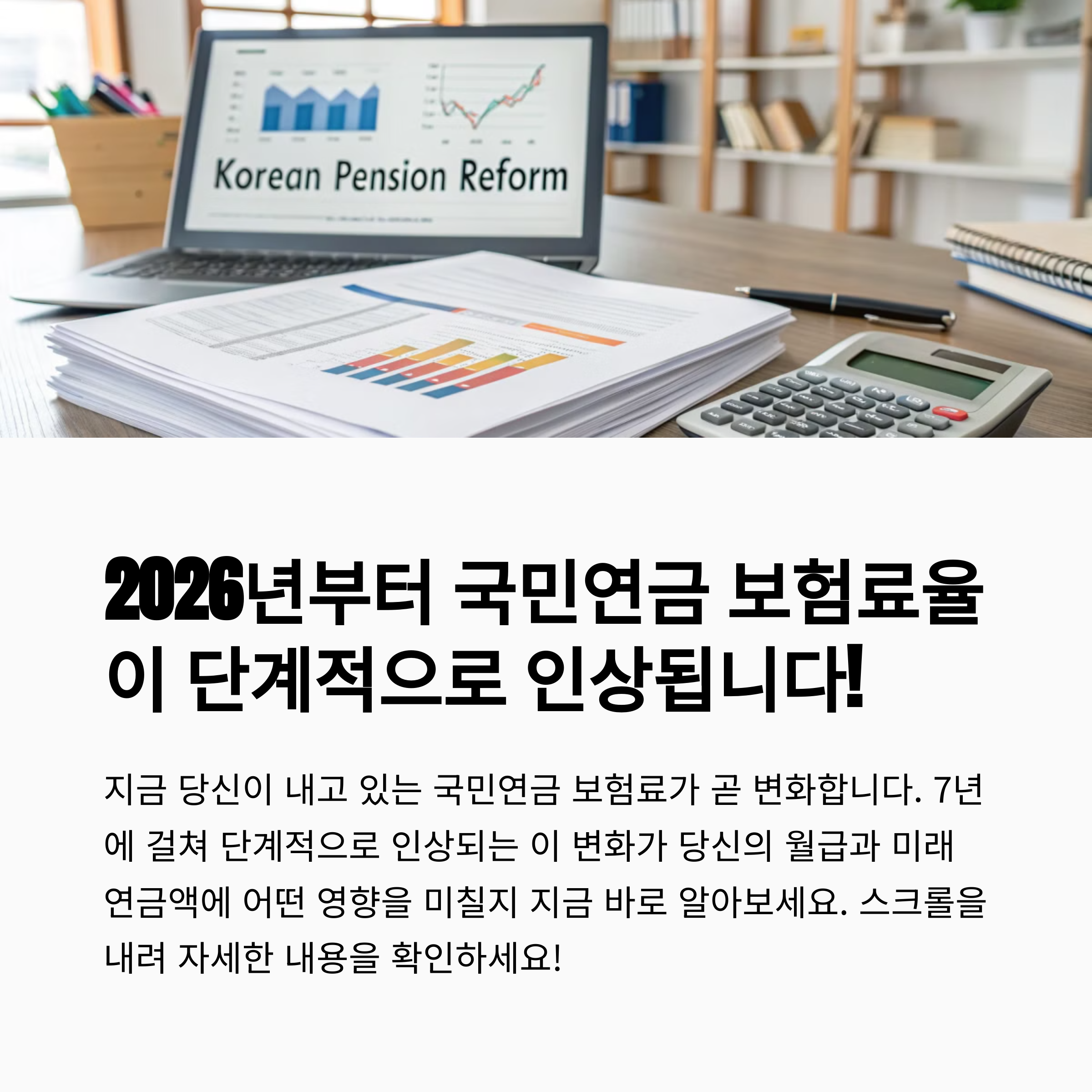 | 국민연금 보험료율 인상 | 2026년부터 매년 0.5%씩 2033년까지 인상됩니다. |