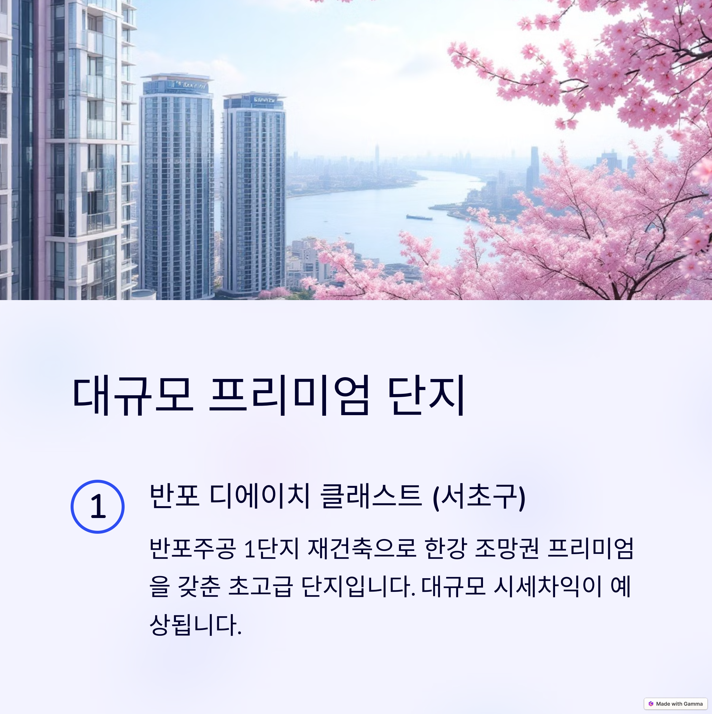 | 주요 입지 | 서울(서초구, 송파구), 경기(성남 분당구), 인천(송도) |