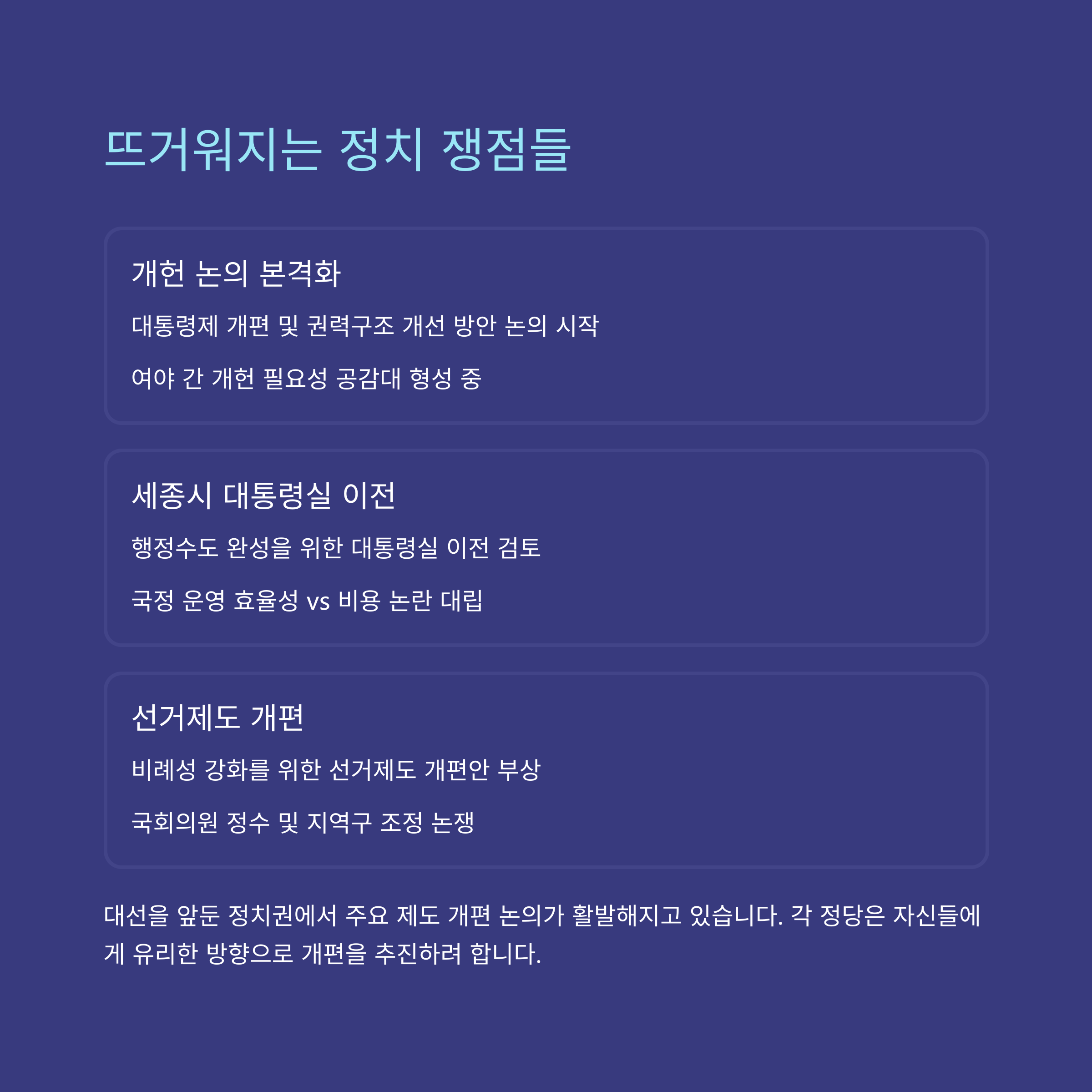 복잡하고 다양한 이슈들을 빠르게 파악하고 싶으신 분들을 위해 핵심만 쏙쏙 뽑아봤어요.